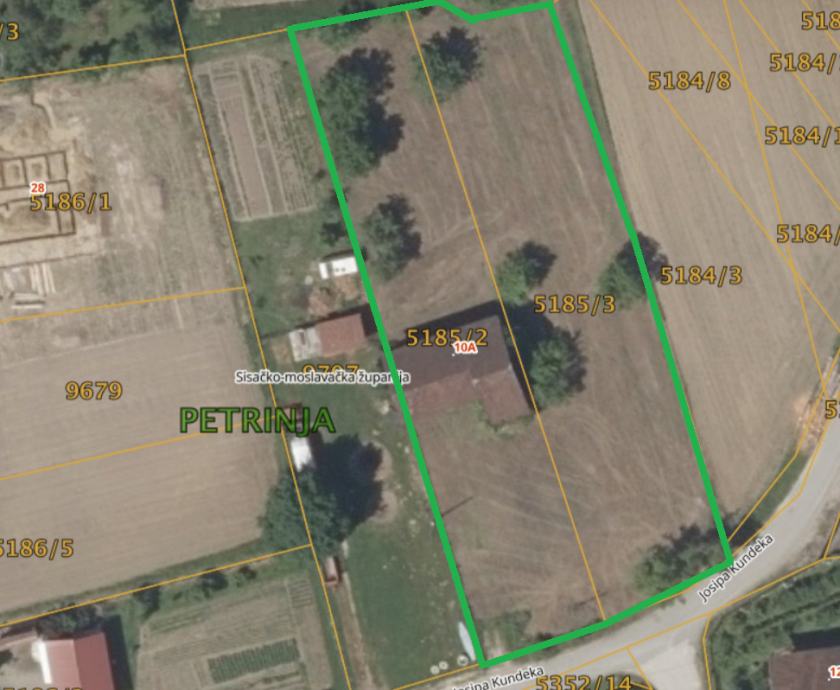 Prodaje se prostrano građevinsko zemljište površine (1560+1700m²) smješteno na dvije parcele nedaleko od centra Petrinje, u ulici Josipa Kundeka.