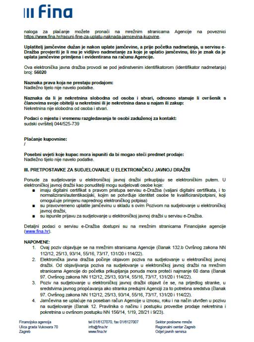dražbi. U slučaju uplate jamčevine putem instant plaćanja potrebno je paziti na opće uvjete te voditi