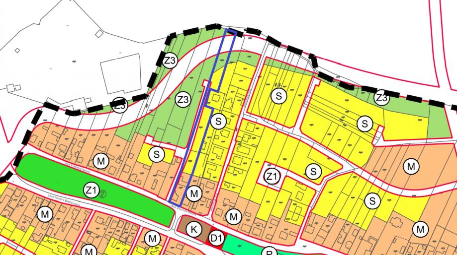- stražnji dio je predviđen kao Z1 zona - ne izgradiva površina - javni park, uređena zelena površina ili igralište dimenzija cca Š 15m x D 58m.