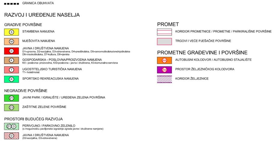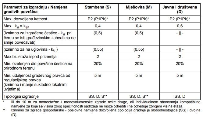 - srednji dio je građevinska zona stambene namjene (P + 2 kata) dimenzija cca Š 18m x D 170m.