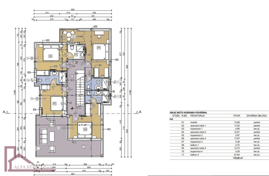 - 4 spavaće sobe s pripadajućim kupaonicama