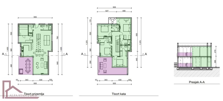 Ukupna površina prizemlja i 1. kata iznosi 228,58 m2.