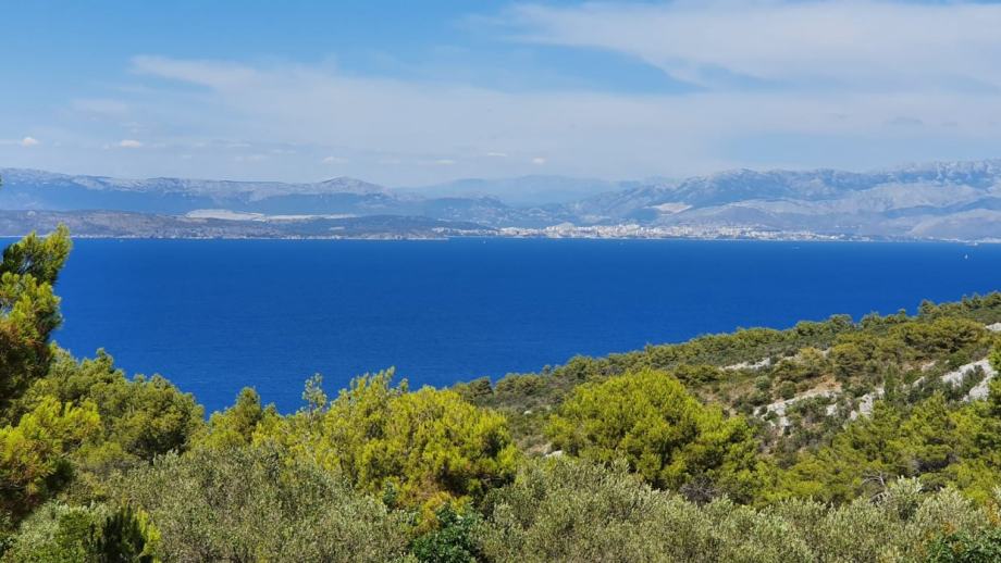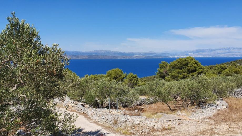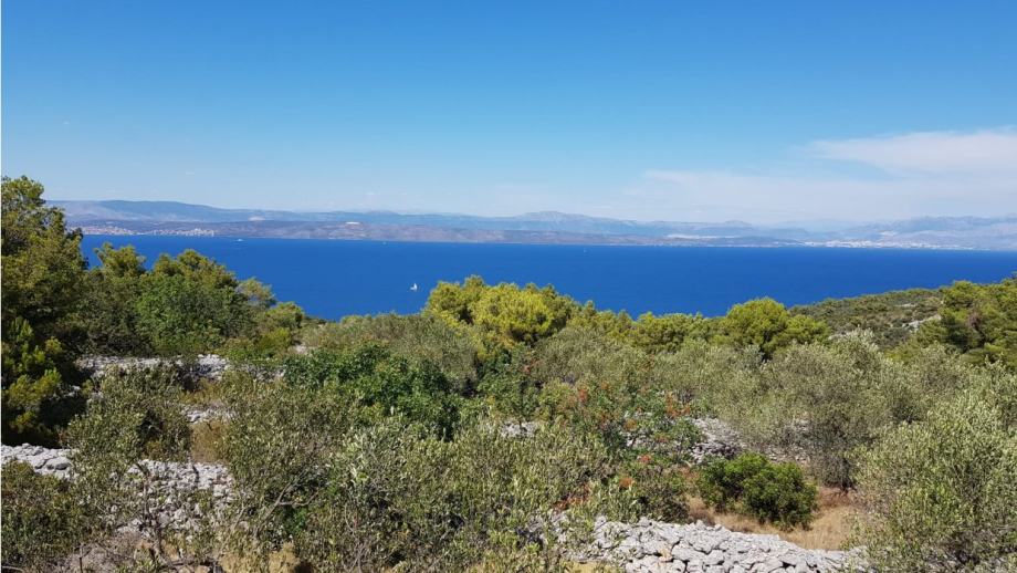 Prekrasno građevinsko zemljište na otoku Šolti s panoramskim pogledom na more na samo 800 m od plaže. Površina zemljišta je 1.050 m2 (cca 16 x 63 m).