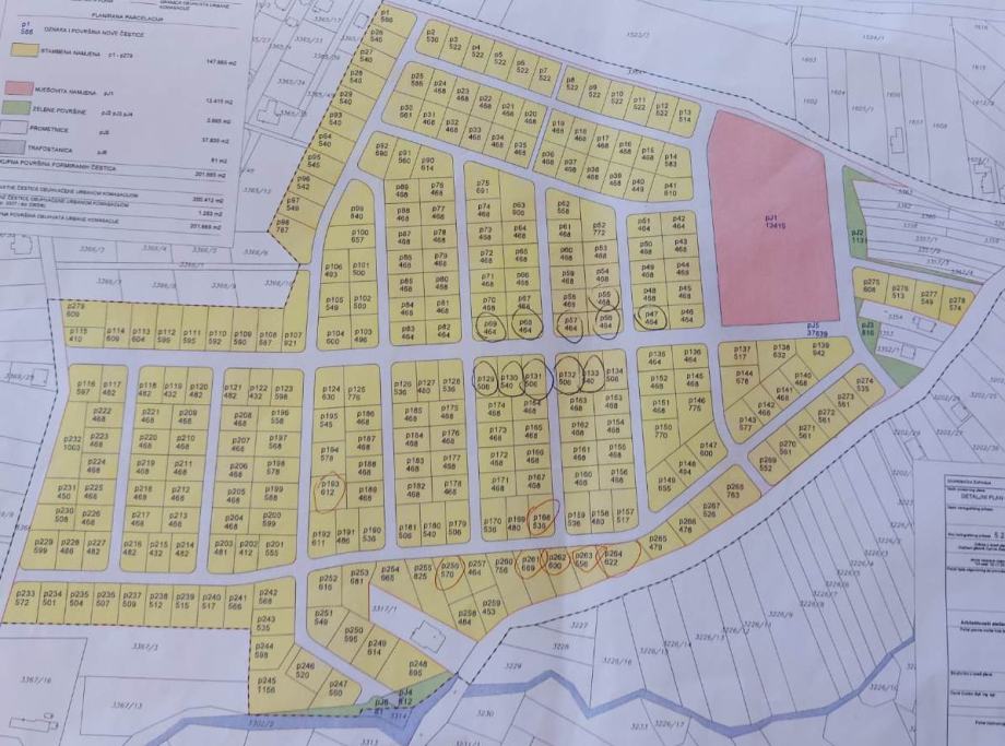 Zbog pristupnog puta trenutno nije moguća gradnja, bez obzira što se nalazi u građevinskom dijelu.