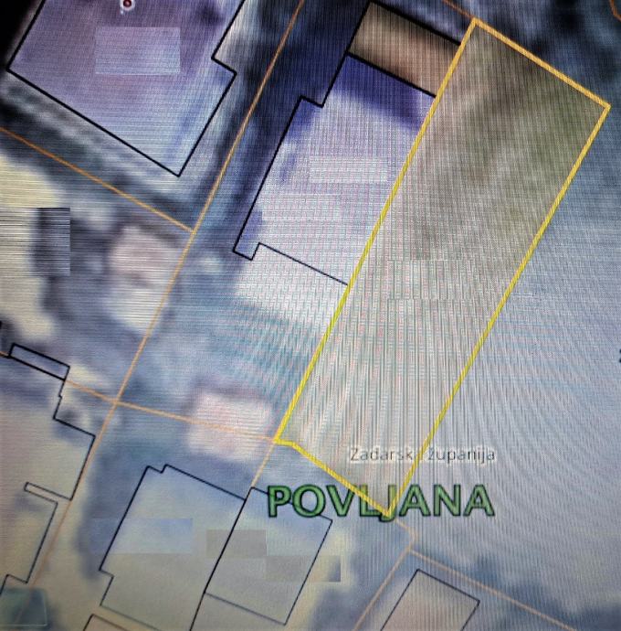 Otok Pag, mjesto Povljana, građevinsko zemljište veličine 304 m2, za gradnju dvojnog objekta ukupne površine 11 x11 m od čega je polovina 5,5 x 11 m kao susjedna kuća na međi već izgrađena na drugoj polovici zajedničke čestice u vrijeme kupnje, čime je bila obuhvaćena jedinstvena građevinska dozvola koja aktivirana i izdana u studenom 1986. g. U međuvremenu je rađena preambulacija na zemljištu čime su se čestice razdvojile pa je važnost grđ.dozvole upitna, ali uz suglasnost gradske uprave postoji mogućnost priznavanja iste.
