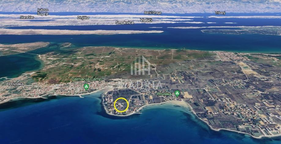 Građevinsko zemljište u Privlaci, površine 480 m2. Zemljište je udaljeno 200 m od mora. Infrastruktura u blizini zemljišta.