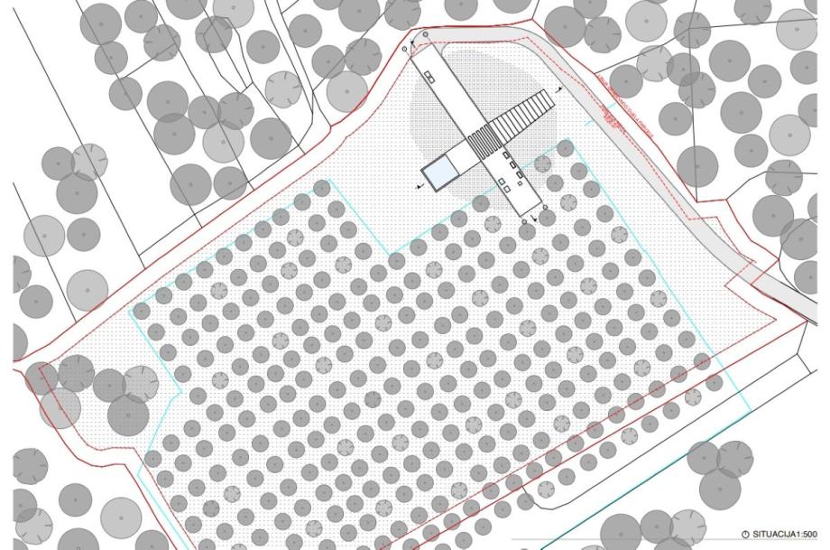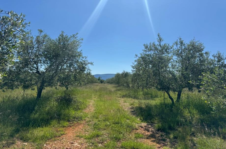 Otok Krk, grad Krk, šire područje, prodaja ekskluzivnog zemljišta površine 36.000 m2, s građevinskog dozvolom i pogledom na more. Uređeno i registrirano poljoprivredno imanje, maslinik s 350 maslina starosti 5-6 godina. Prema važećoj građevinskoj dozvoli i projektu odobrena je izgradnja moderne vile površine 200 m2. Vila se sastoji od dnevne sobe, kuhinje, blagovaone, četiri spavaće sobe s privatnim kupaonicama i loggiama, toaleta, hodnika, natkrivenog zajedničkog prostora i otvorene terase s bazenom i jacuzzijem. Izvanredna prilika s velikim potencijalom na svega 1000 m od mora.