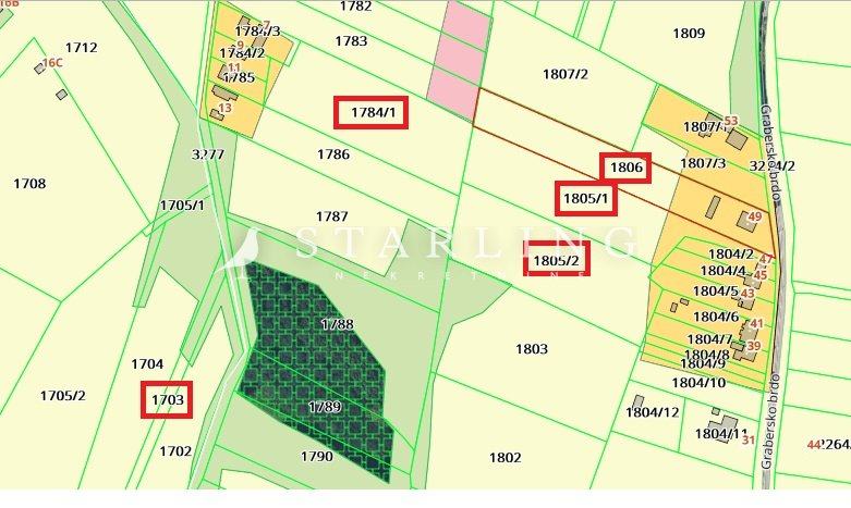 Zemljište se sastoji od 5 čestica koje su vidljive iz tlocrta parcela.