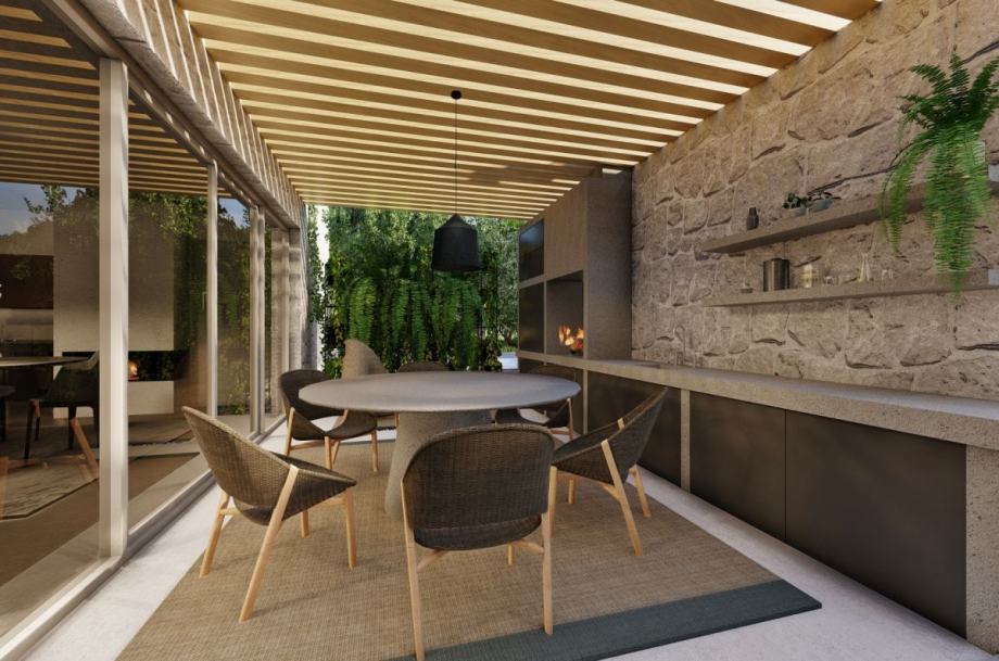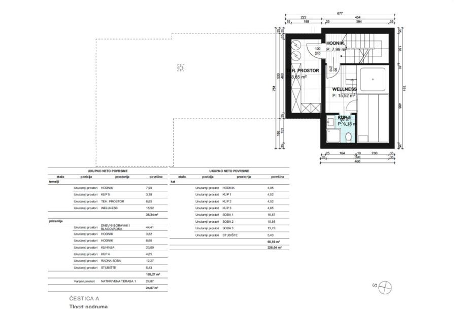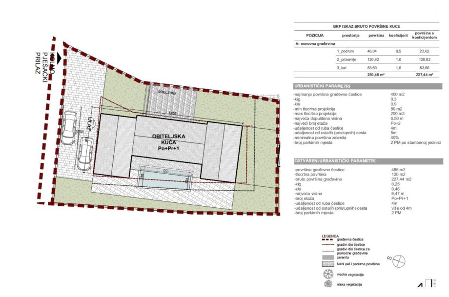 Otok Krk, Vrbnik, Garica, prodaja atraktivnog građevinskog zemljišta površine 484 m2, s predanom dokumentacijom za ishodovanje građevinske dozvole za izgradnju urbane mediteranske vile površine 227,44 m2, s bazenom i okućnicom oplemenjenom mediteranskim biljkama. Kuća se sastoji od suterena s wellnesom, tehničkom sobom, kupaonicom i hodnikom, prizemlja s dnevnom sobom, kuhinjom, blagovaonom, spavaćom sobom, kupaonicom, stubištem i natkrivenom terasom od 22 m2 s ljetnom kuhinjom te prvog kata s tri spavaće sobe i tri kupaonice. Mirna lokacija okružena zelenilom, 4000 m od mora i centra Vrbnika.