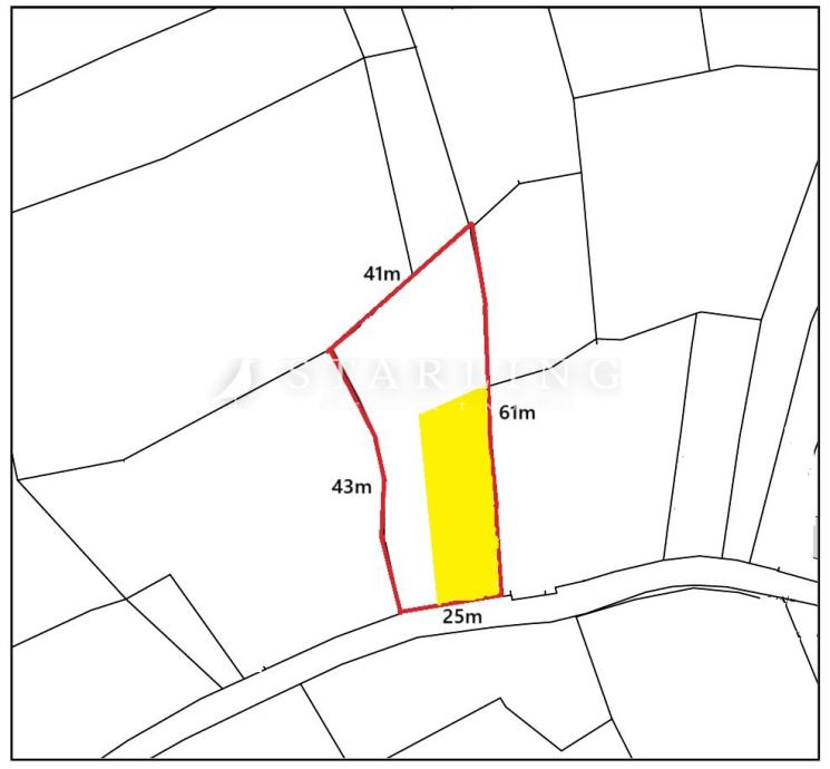 Dio zemljišta površine cca 600 m2 nalazi se u zoni stambene namjene S (označeno žutom bojom), ostatak zemljišta nalazi se u Z 2 zoni.
