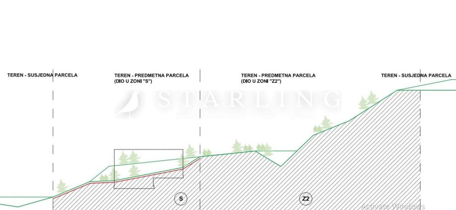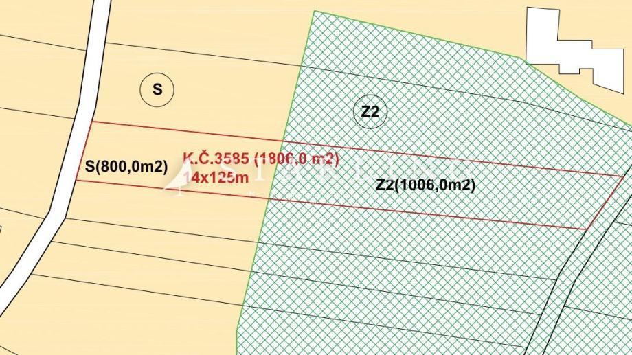 Širina zemljišta iznosi cca 14.5 metara,a dužina 125,(gradivi dio oko 60 metara)