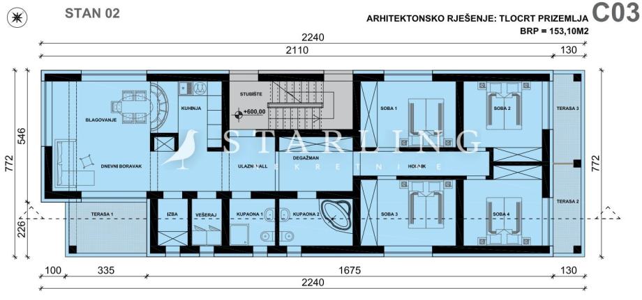 Za građevinski dio vrijedi urbano pravilo 2.2.