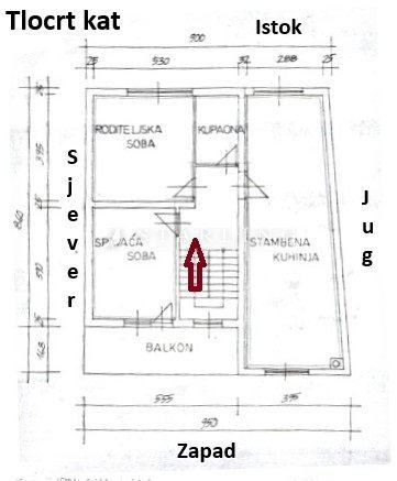 Objekt se sastoji od dvosobnog stana s nusprostorijama u prizemlju veličine 55,44 čm i dvosobnog stana s nusprostorijama na katu veličine 62,95 čm