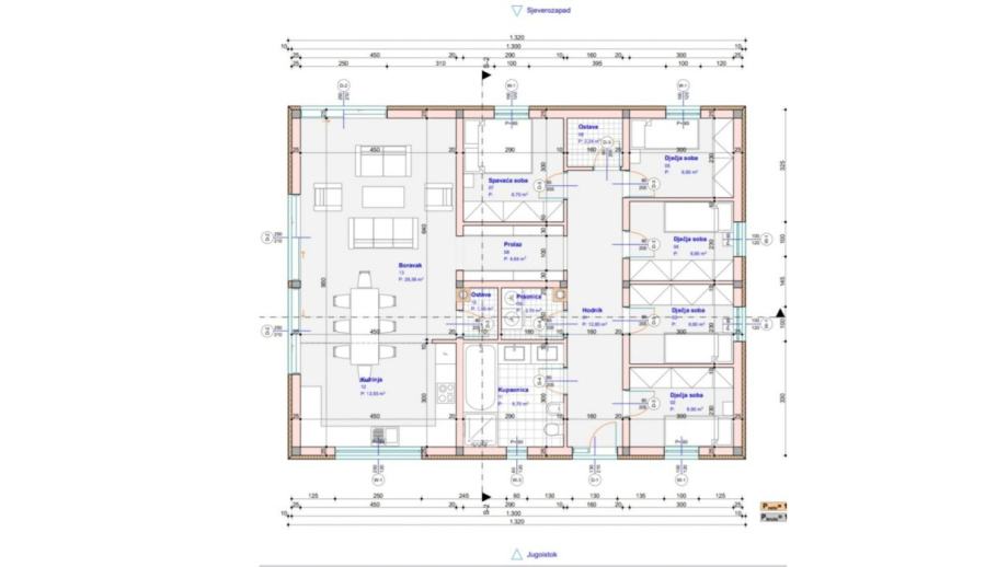 Predana je dokumetacija/projekt za građeviski dozvolu za kuću od 135 m2.