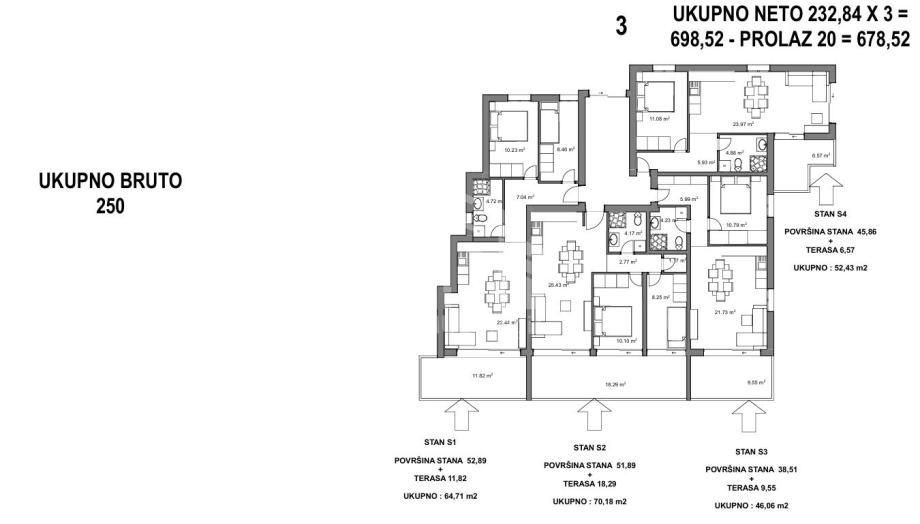 Na zemljištu se može graditi objekt od tri etaže s ukupno 12 stanova, tlocrte idejnog projekta možete pronaći u galeriji.