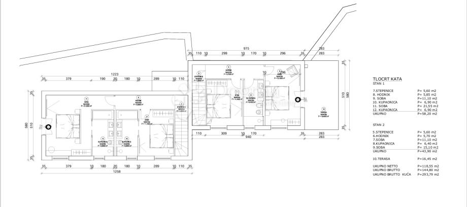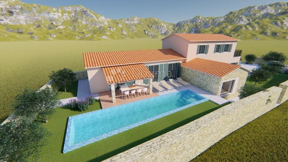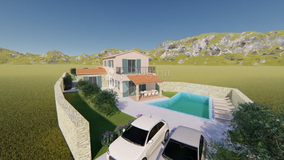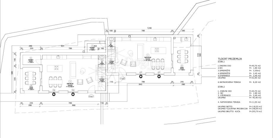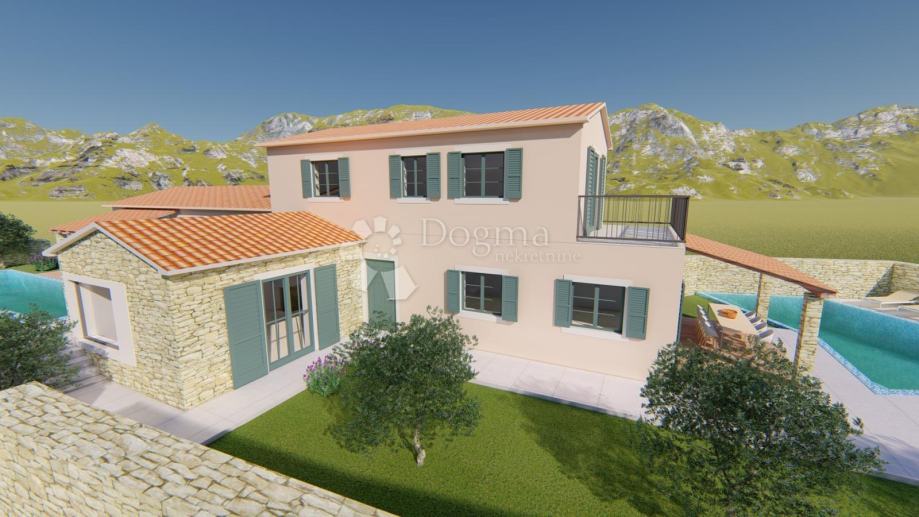 Na prodaju je građevinsko zemljište ukupne površine 586 m² s pravomoćnom građevinskom dozvolom. Prema projektu, na zemljištu je predviđena izgradnja dvojne kuće ukupne bruto površine 293,79 m², koja se sastoji od dvije kuće za odmor, svaka s vlastitim bazenom.