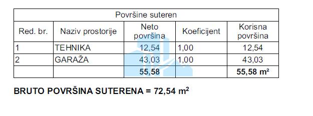 - Suteren: dupla garaža + spremište