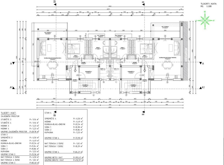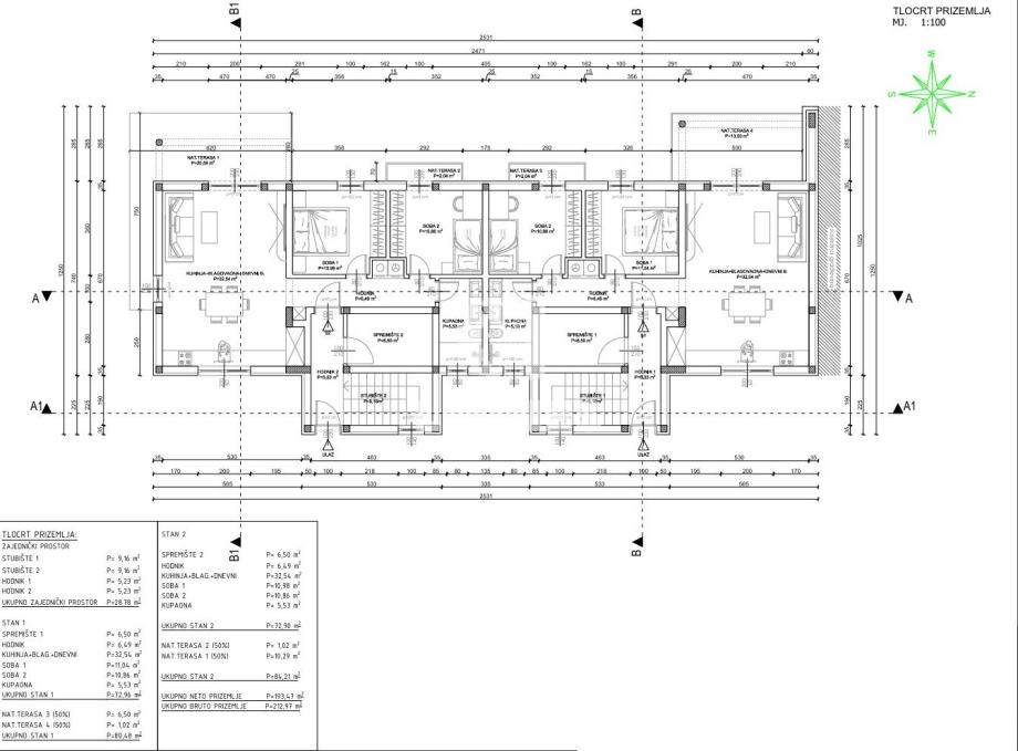 Prodaje se građevinsko zemljište s projektom izgradnje šest stambenih jedinica u blizini Umaga. Za zemljište se ubrzo očekuje ishodovanje građevinske dozvole. Stanovi su površine od 80 do 84 m2. Stanovi na drugom katu imati će pogled na more. Sva infrastuktura je u blizini.