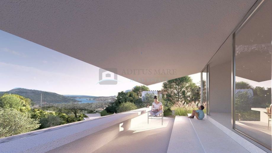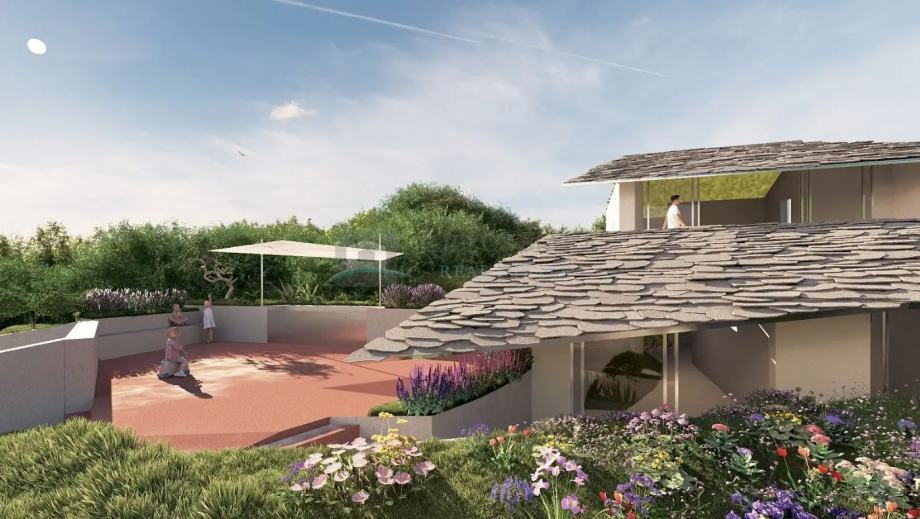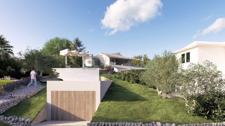 Garaža s krovnim sunčalištem Projekt uključuje izgradnju garaže, iznad koje se nalazi sunčalište s pogledom na more – savršeno za opuštanje i privatnost.