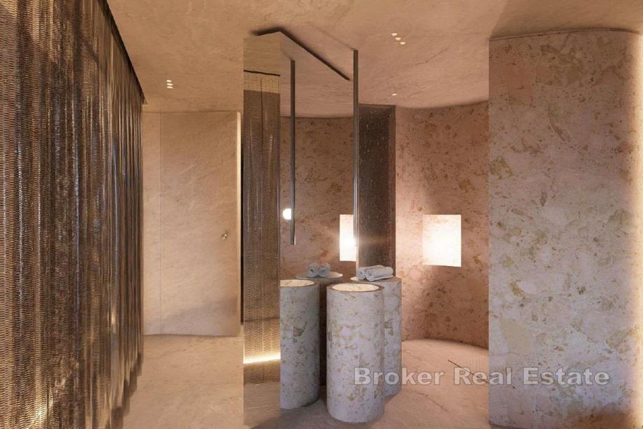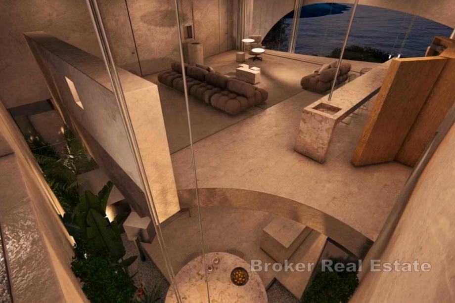 Prema projektu, vila se sastoji od tri etaže i zauzima ukupno 330m2 stambenog prostora. Suteren je zamišljen kao veliki dnevni prostor otvorenog koncepta, s kuhinjom, blagovaonicom i pristupom skladnoj okućnici s bazenom, jacuzzijem i velikim vanjskim terasama. U prizemlju će se nalaziti dodatni dnevni prostor s barom dok je na katu planirano pet spavaćih en suite soba. Etaže su međusobno povezane liftom i elegantnim unutarnjim stubištem.