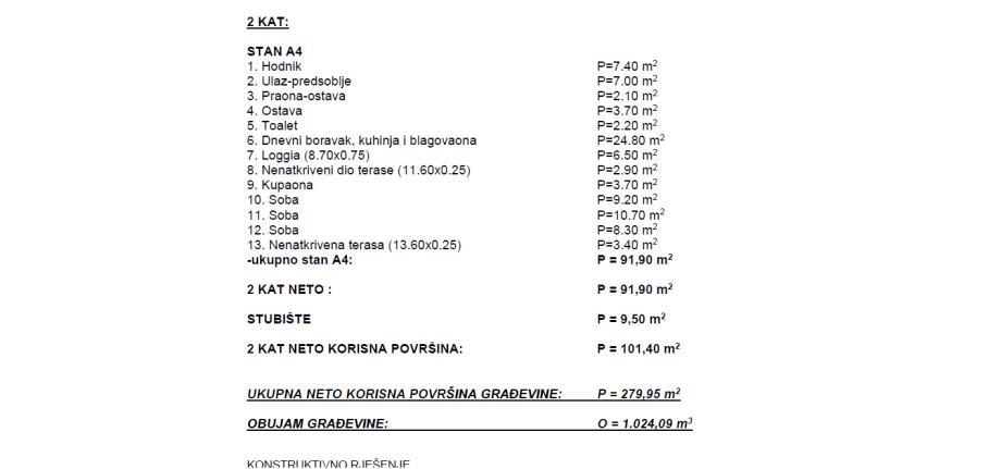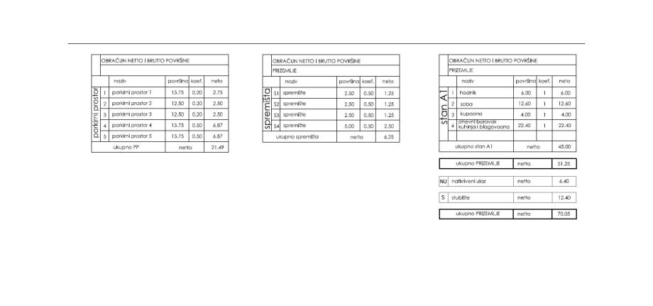 -Stan 53 m² + Parking 2,5 m² + Spremište 1,25 m² - ukupno obračunski: 57 m²
