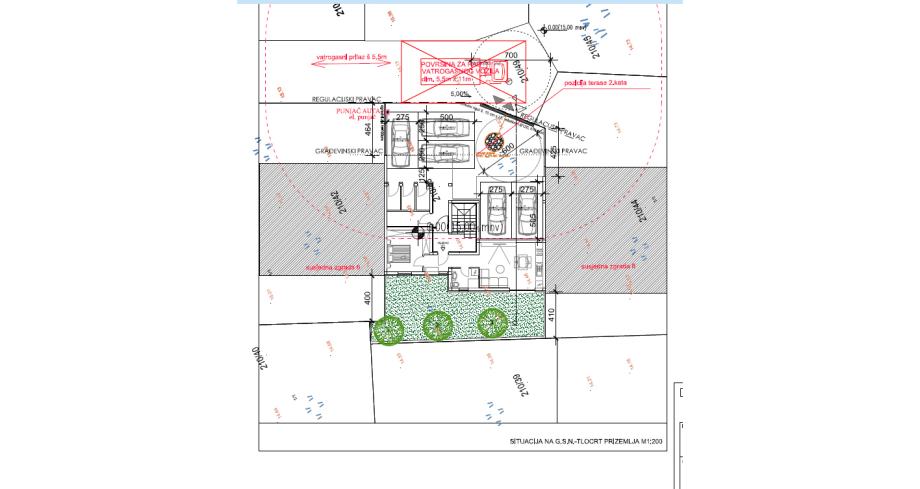 Planirana izgradnja: 4 stana s dvije garaže i tri parkirna mjesta .