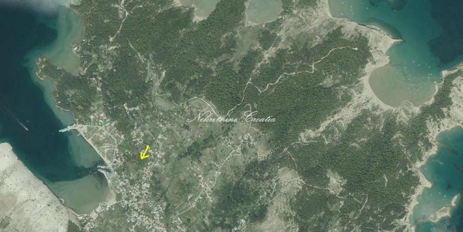Građevinsko zemljište površine 3.620 m2 na svega 200 metara od Uvale Lopar, na blago povišenom dijelu, sa prekrasnim pogledom na morsko plavetnilo.