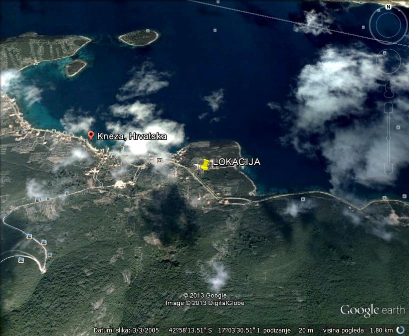 Korčula, Kneže (sjeverni dio otoka, 7km od Korčule i 3km od Račišće), građevinsko zemljište 903 m2, 190 m od mora i plaže, pristupni put. Postojeće komunalije u blizini parcele.