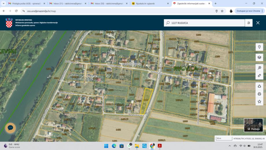 U ponudi je građevinsko zemljište na uglu Behetićeve i Posavske u Rugvici, 1914 m2.