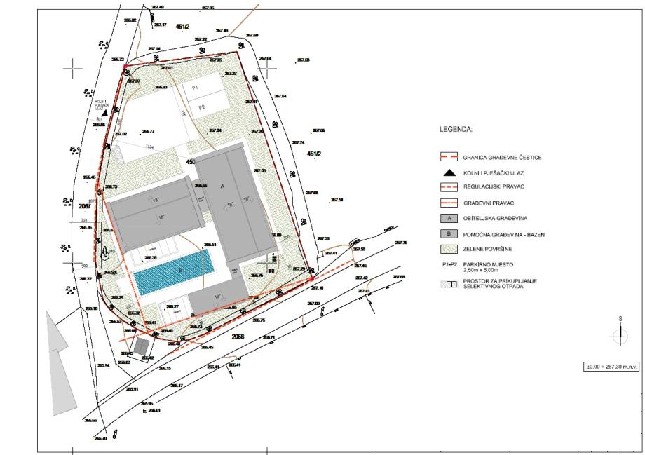 Prodaje se građevinsko zemljište površine 760 m2, vlasništvo 1/1 bez tereta. Ishodovana je pravomoćna građevinska dozvola sa glavnim projektom za trosobnu vilu sa bazenom bruto površine od 180 m2. Na zemljištu je napravljeno sljedeće: