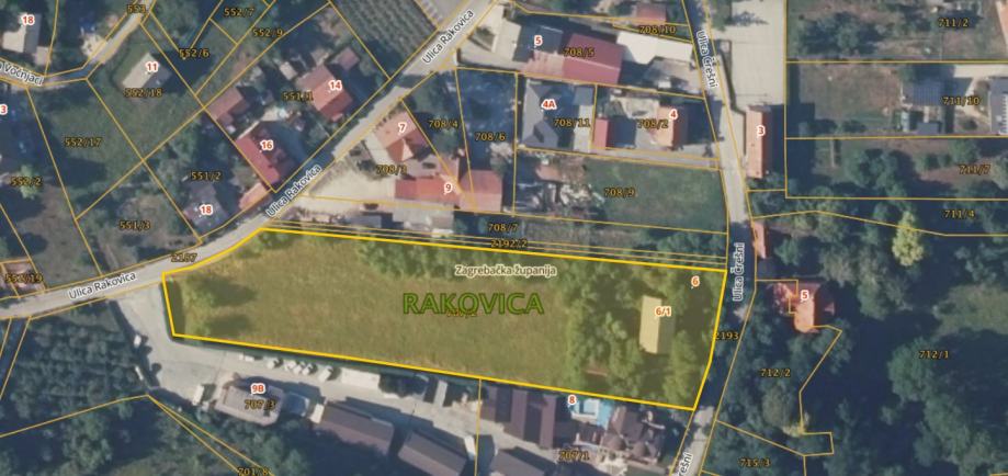 Građevinsko zemljište, Samobor, Velika Rakovica, 8234 m2, struja, vodovod, plin, povezano sa dvije asfaltne ceste, škola i dječji vrtić cca 150 m, autobusna stanica cca 250 m, cca 2,3 km do centra Samobora, na parceli se nalaze 3 građevinska Objekta koji nisu u upotrebi.