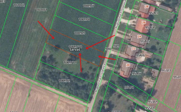 SARVAŠ!! EXTRA MIRNA STAMBENA ULICA!! GRAĐEVINSKO ZEMLJIŠTE POVRŠINE 920m2!! FRONTA 15M!! KOLNI PRILAZ!!!ULICA TINA UJEVIĆA!! MOGUĆNOST ZAMJENE ZA MANJI JEDNOSOBAN STAN U DONJEM GRADU (OSIJEK)