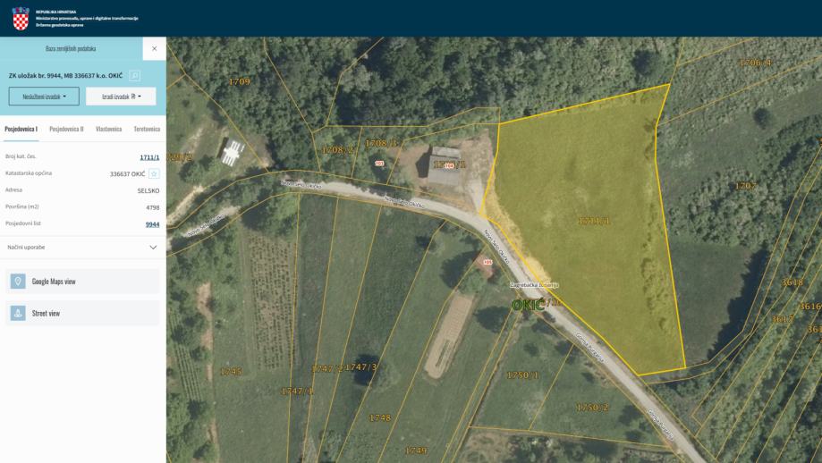 Prodajem zemljište u Novom Selu Okićkom. Katastarski broj čestice - 1711/1
