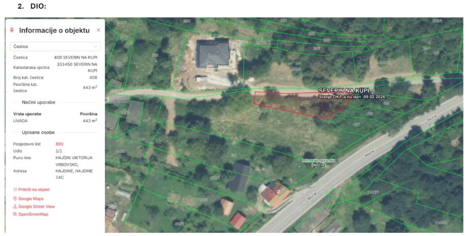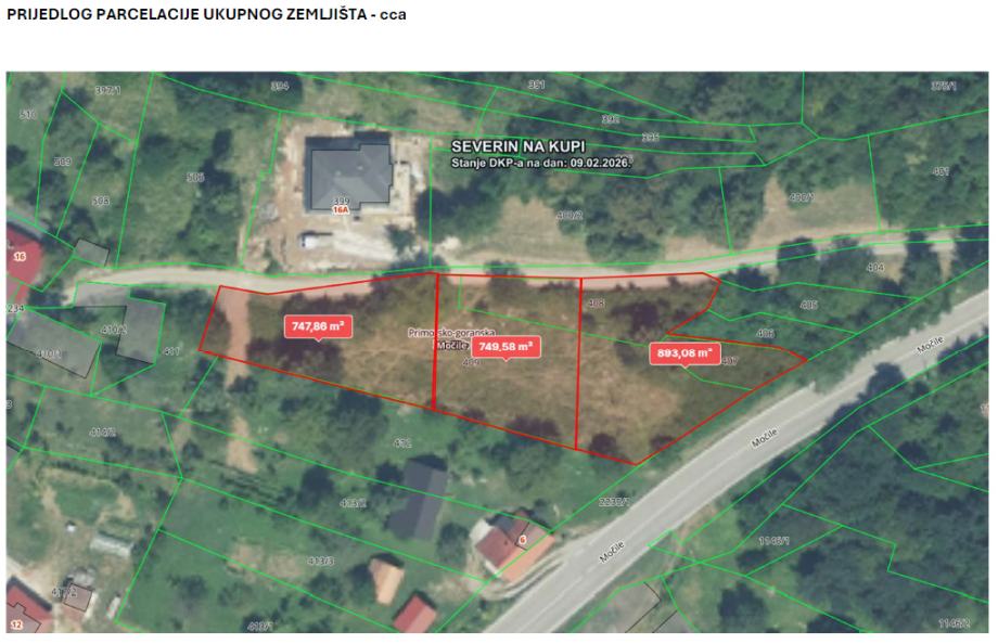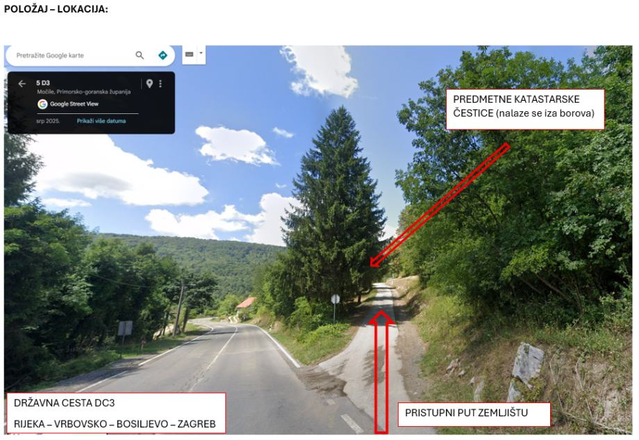 Zemljište se nalazi u građevinskoj zoni, te se na zemljištu već nalaze potrebni priključci STRUJE, VODE i TELEFONA (smanjuje troškove planiranja i građenja priključka do zemljišta). Zemljište je smješteno u mjestu Severin na Kupi te se zemljištu pristupa asfaltiranom cestom tj. prilaznim putem sa državne ceste DC3 na relaciji Rijeka - Zagreb.