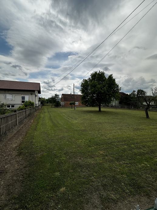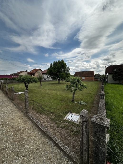 Zemljište se sastoji od tri kat. čestice, na jednoj je izgrađena 1968.godine., prizemna obiteljska kuća, tlocrtne površine cca 110 m2 sa priključkom struje, vode, kanalizacija , plin na ulici ispred kuće i pomoćni objekti .