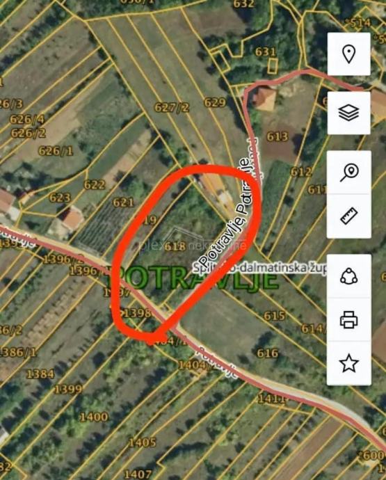 Prodaje se građevinsko zemljište u Potravlju ukupne površine 2988 kvadrata s 1 malim objektom. S jedne strane parcele je cesta dok je s druge strane put.