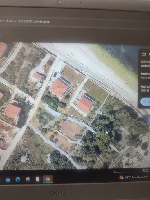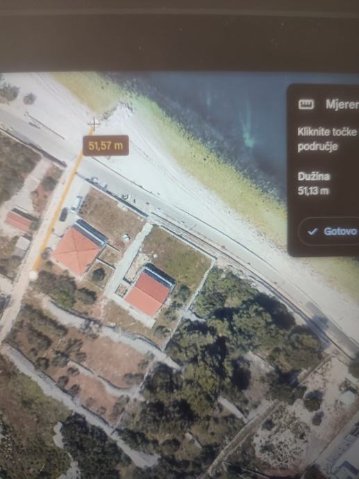 Zemljište je veličine 500m2, pravilnog oblika , predivnog pogleda, udaljeno od mora 50m u naravi drugi red od mora, na zemljištu ne nalazi 13 rodnih maslina starih cca 20god.
