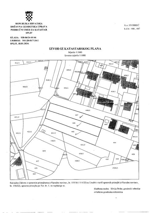 Atraktivno građevinsko zemljište nalazi se na Šinama (katastarski okrug Stobreč),a sastoji se od tri parcele koje se mogu formirati na nekoliko manjih. Zemljište je čisto vlasništvo i ničim nije opterećeno. Od mora je udaljeno oko 400 m. Smješteno je uz cestu (buduću Vukovarsku koja povezuje Split i Stobreč). Od magistrale je udaljeno 80 m. Do centra Splita (Riva) je 5 km, a do aerodroma 15 km. U blizini je velikog kampa, teniskog centra, streljane, nogometnog igrališta, crkve. Također je u blizini dječjeg vrtića, TTTS, a od osnovne škole i ambulante je udaljeno svega 20-ak metara. Završetkom izgradnje produžetka Vukovarske ulice zemljište će dobiti novu vrijednost. Kompletna infrastruktura (voda, struja, kanalizacija, lokalni gradski prijevoz) je tu. Budući gazda (ili gazde) turističkog, ugostiteljskog, apartmanskog ili mješovitog objekta blagoslivljat će dan kad su me sreli i napravili veliki posao. Cijena 550 eura po m2. Za sve informacije sam na usluzi na mobitel 0915408678