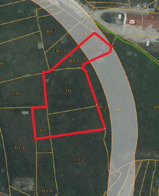 Trenutan pristup je makadamski put sirine 4 metra, ali nova 4 tracna cesta je u fazi izgradnje (lokacijska dozvola je izdana) tako da ce parcela imati izvrsnu prometna povezanost i cesta ce prolaziti duz cijele parcele (pogledati sliku )