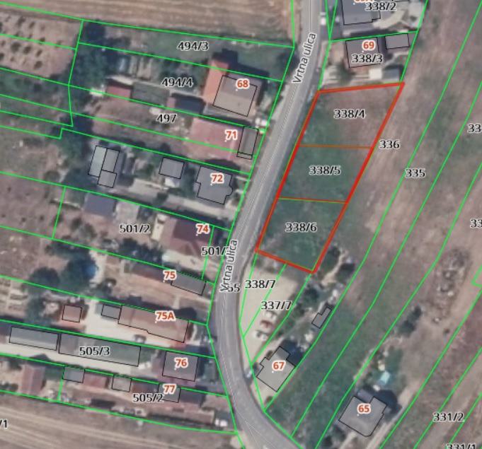 Parcela je pripremljena za gradnju 3 kuće, vlasništvo 1/1.