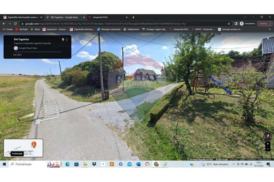 Sastoji se od dvije katastarske čestice: manje koja ima površinu 892 m2 i veće koja ima površinu 2036 m2. Čestice se drže jedna do druge i prodaju se zajedno. Na manjoj čestici nalaze se tri starija objekta- drvena kuća, sjenik i gospodarska zgrada u dosta ruševnom stanju. Čestice su sa dvije strane omeđene cestom - po duljoj strani ide asfaltni put a uz kraću stranu ide makadam. Dodatno se na manjoj parceli nalazi i bunar. Na samom imanju nema priključka struje niti vode ali budući da su čestice u građevinskom stambenom dijelu GUP -a općine Marije Bistrice priključci prolaze uz parcele.