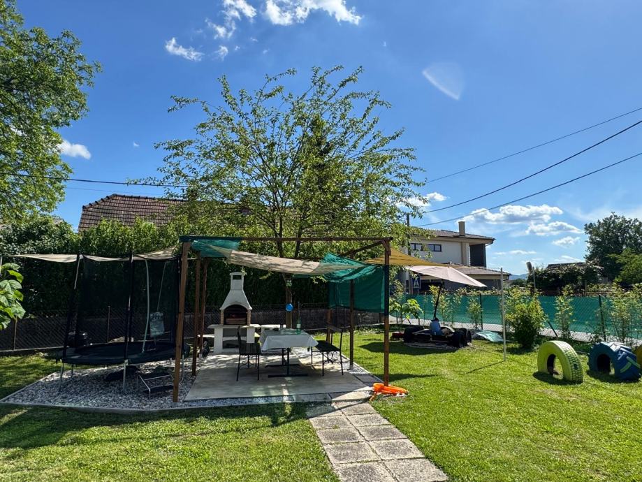 Stoga je u njemu već napravljen određeni sadržaj za djecu (nadstrešnica i klupe, roštilj, trampolin, pješčanik itd)