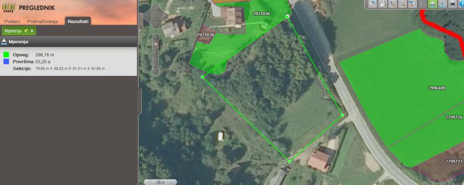 Pola zemljišta (cca. 3.000 m2) je u građevinskoj zoni (postoji dozvola gradnje vikendice ili kuće jer se na zemljištu povijesno nalazila kuća). Druga polovica je mala šuma (cca. 2500 m2).