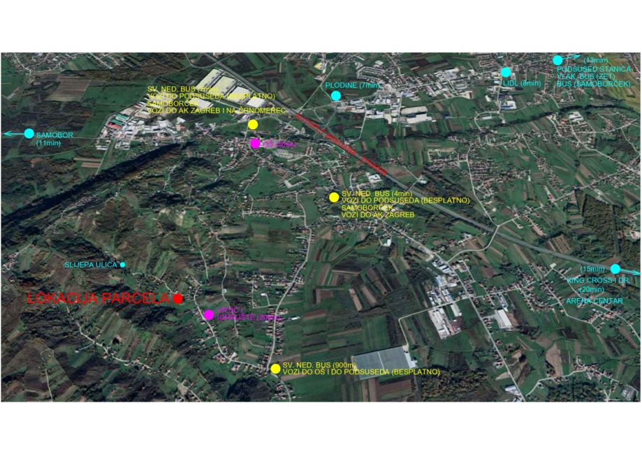 Zemljište je idealne zemaljske orijentacije S-J, uz koje prolazi sva potrebna infrastruktura (struja, voda, plin, telefon/internet) potrebna za gradnju. Širina zemljišta je 20 metara.