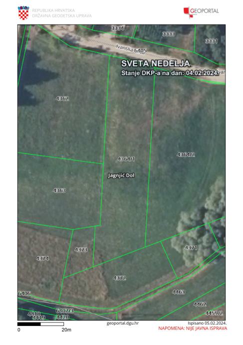 Prodaje se građevinsko zemljište na mirnoj lokaciji u Svetoj Nedelji u mjestu Jagnjić Dol, Ivanska ulica.