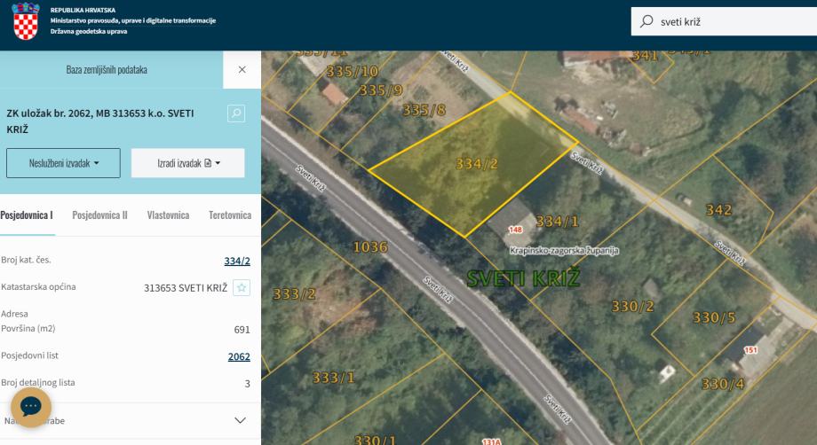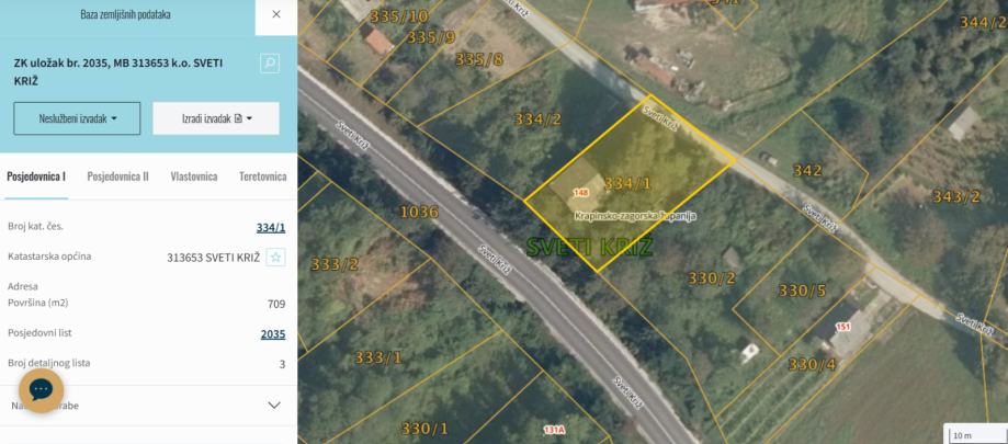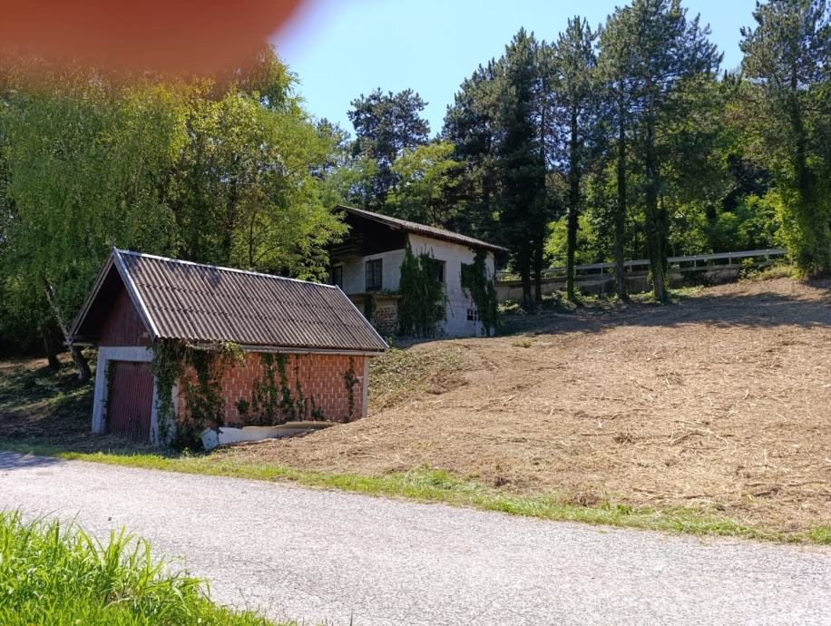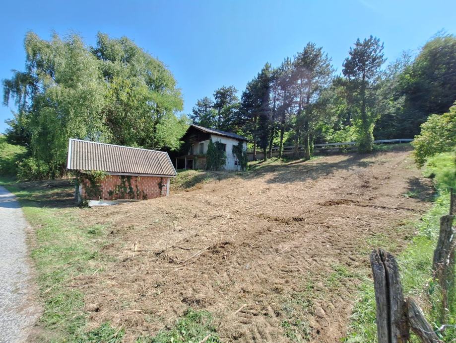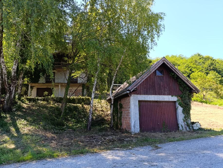 Sv Križ, Tuhelj, građevinsko zemljište, 1.400 m2, s nedovršenom kućom od 48m2 (posjeduje građevinsku dozvolu) i zasebnom garažom. Lokacija se nalazi 2 km od Tuheljskih toplica s lijepim pogledom na dolinu.