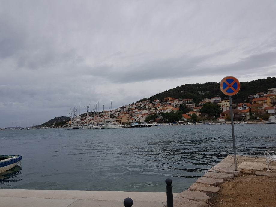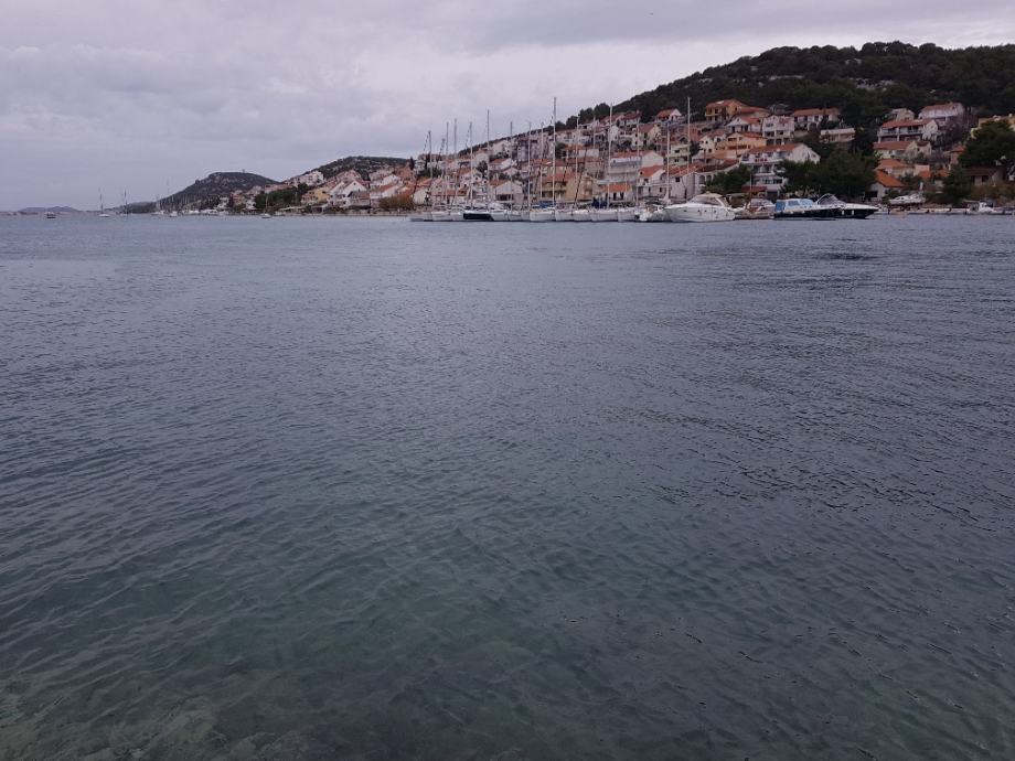 Građevinsko zemljište Murter. Tisno, blizu ulice Put Jazine i Šibenske u Tisnom, pogled na more i na otok Murter te prema Kornatima, pravilnog oblika, blaga padina prema moru, asvalt, 100 m od mora, voda, struja i kanalizacija na cesti.