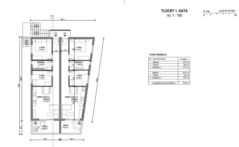 Prodaje se građevinsko zemljište u Trogiru površine 449 m2 s idejnim rješenjem za 4 stana.
