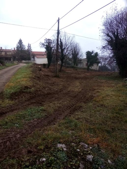 Na cesti Pazin - Trviž - Motovun, 6 km od Motovuna, u centru zaseoka Škrapi, uz glavnu cestu, ravno građevinsko zemljište prodajem.