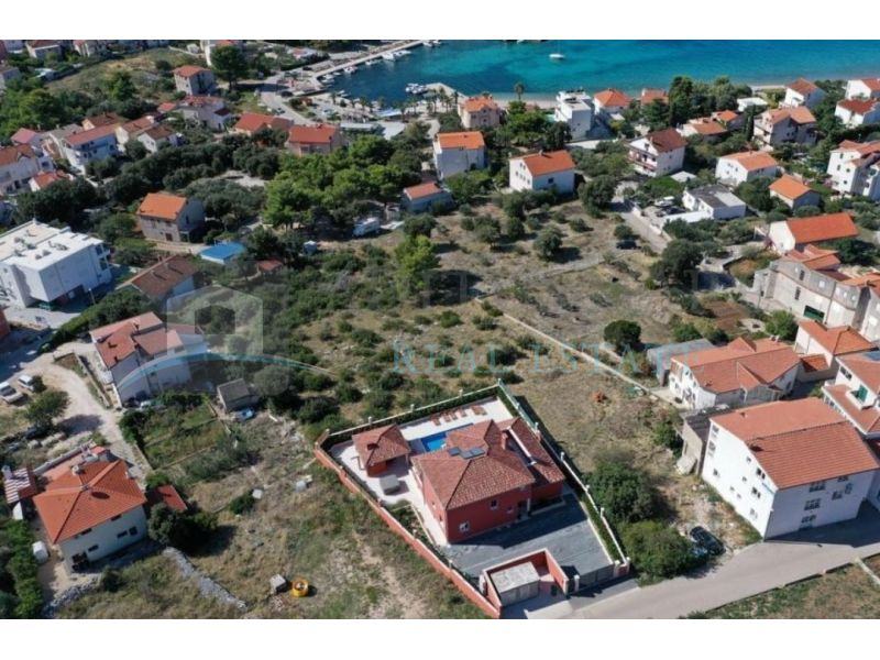 Prodaje se građevinsko zemljište na idealnoj lokaciji u Žaboriću, udaljeno oko 140 m od mora. Zemljište ima površinu od 767 m2, a postoji građevinska dozvola za kuću s 3 stambene jedinice. Zemljište se može prodati zajedno s projektom. Ima pristupni put za vozila.